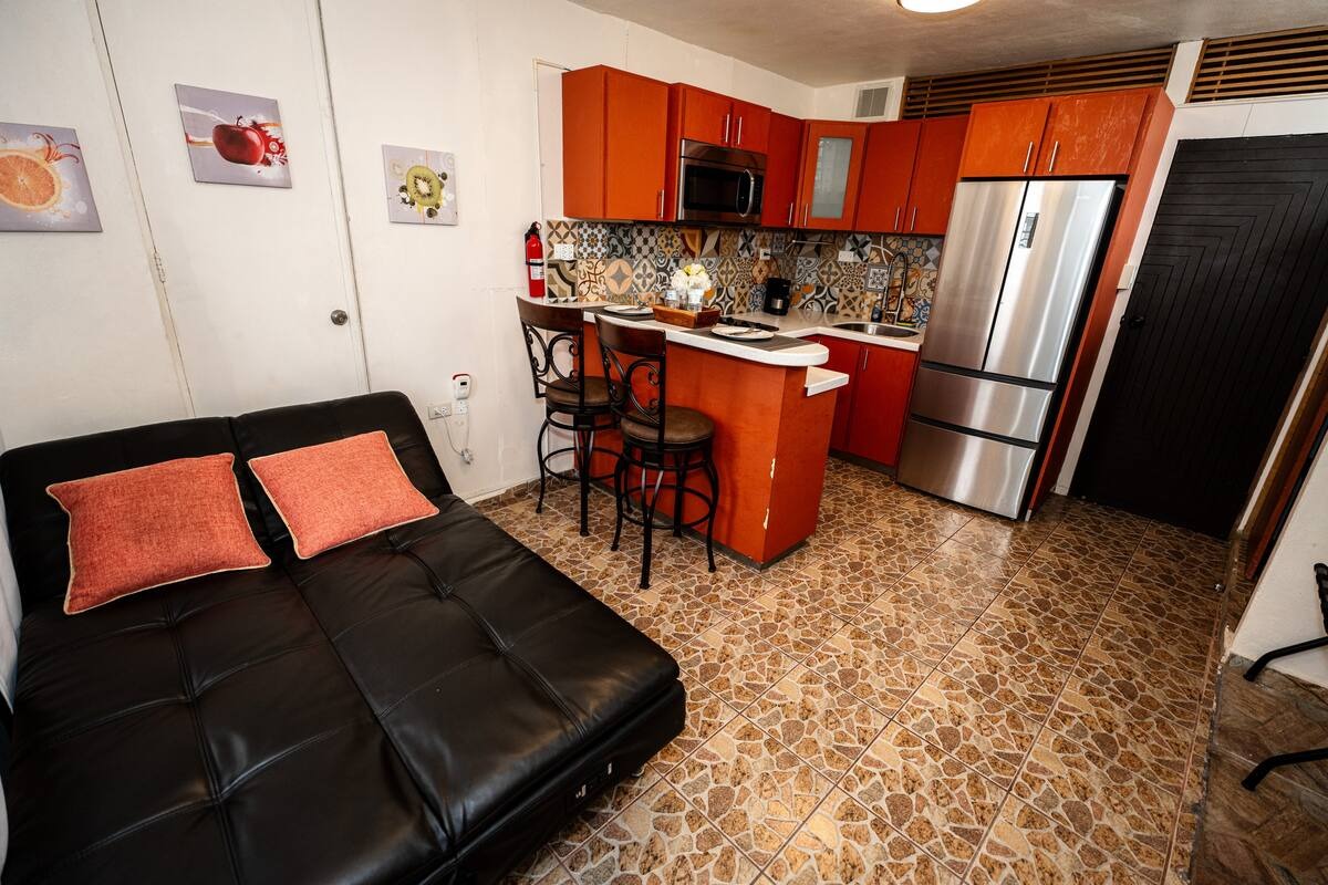 Step into this delightful studio apartment and feel right at home. The living area features a comfortable sofa bed that can accommodate additional guests, perfect for couples or small groups. Relax in front of the TV or enjoy the convenience of the fully equipped kitchen. The kitchen island offers seating for two, making it a great spot to enjoy breakfast or a quick snack. Prepare meals with ease using the gas stovetop, microwave, and coffee maker. The apartment is well-stocked with dishes, glassware, and all the necessary cooking utensils. A full-size refrigerator with French doors provides ample storage for your groceries. A small closet offers additional space for your belongings.The separate bedroom features a cozy full-size bed, perfect for a restful night's sleep. An en suite bathroom with a rainfall shower adds to the spa-like experience. The apartment is equipped with free Wi-Fi and inverter air conditioning throughout to ensure your comfort.Your Home Away from Home: This studio apartment is perfect for those seeking a convenient and comfortable base for exploring the area. Whether you're traveling solo, as a couple, or with a small group, you'll find everything you need to enjoy a relaxing and memorable stay.Book your cozy studio retreat today! If you are travelling with friends take note we offer 8 suites in the same property